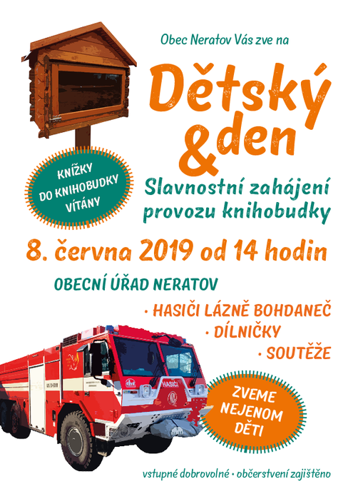 Úvod > Obec > Aktuality > Pozvánka na Dětský den a Slavnostní zahájení provozu knihobudky